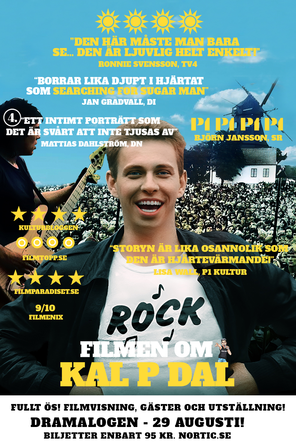 Denna unika visning blir en kväll att minnas. Innan filmen kan ni åtnyttja Kal P Dals musik och prata Kal P Dal minnen över en öl. Efter visningen blir det frågor och svar med regissörerna Dag Ösgård och Stefan Källstigen. Dessutom miniutställning och en och annan överraskning!