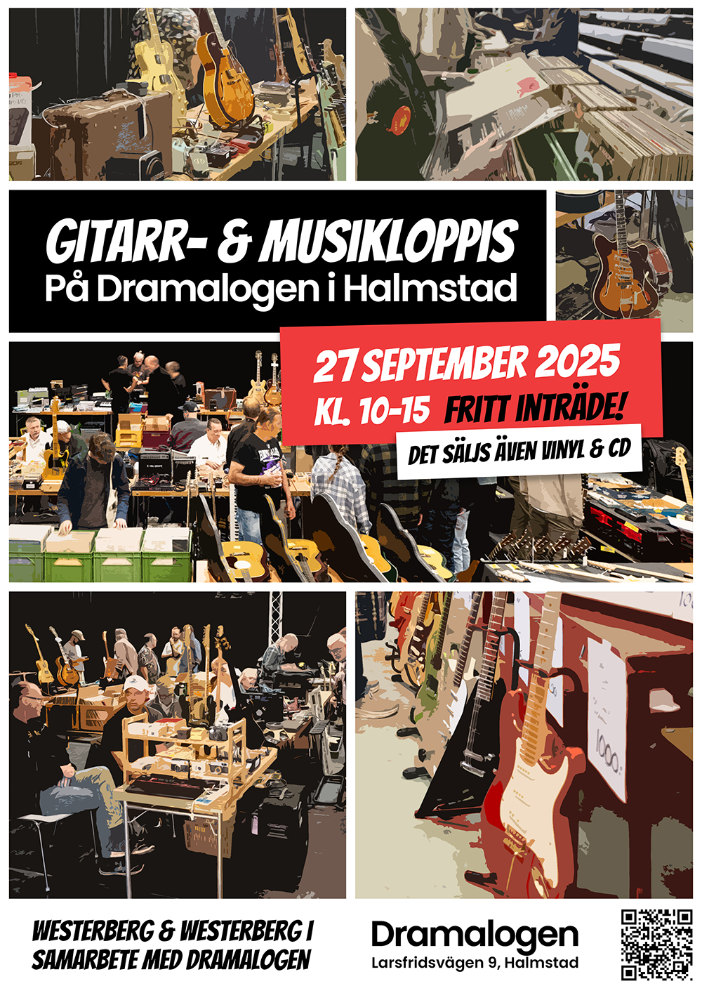 Gitarrloppisen återvänder 2025, vi har döpt om den till Gitarr- & Musikloppis eftersom det inte bara är gitarrprylar som säljs 🙂